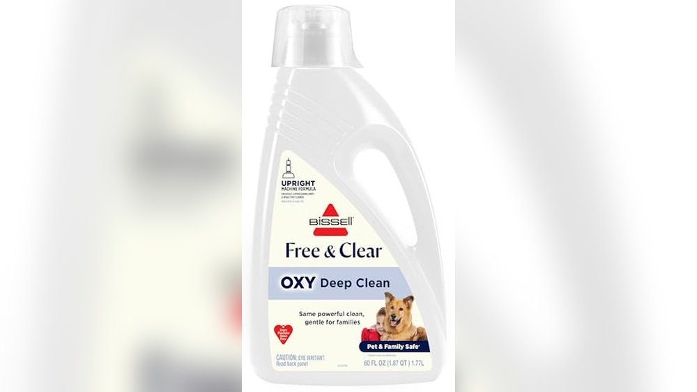 The Bissell Free & Clear OXY Carpet Deep Clean Solution is designed for use in leading upright carpet cleaners to tackle dirt, pet messes, and allergens. Its hypoallergenic formula is free from dyes and fragrances, making it suitable for sensitive households.