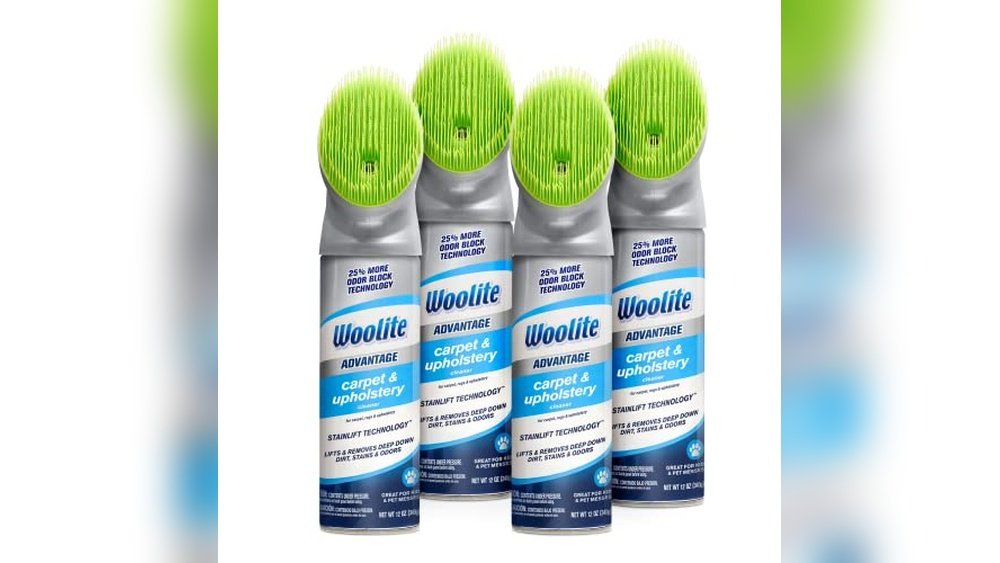 The Bissell Woolite Upholstery Cleaner 4-Pack is a spray designed to tackle tough stains, dirt, and odors on upholstery and carpet fabrics. It uses StainLift Technology to pull out deep-down grime and includes a fabric-safe brush that cleans gently without over-wetting.